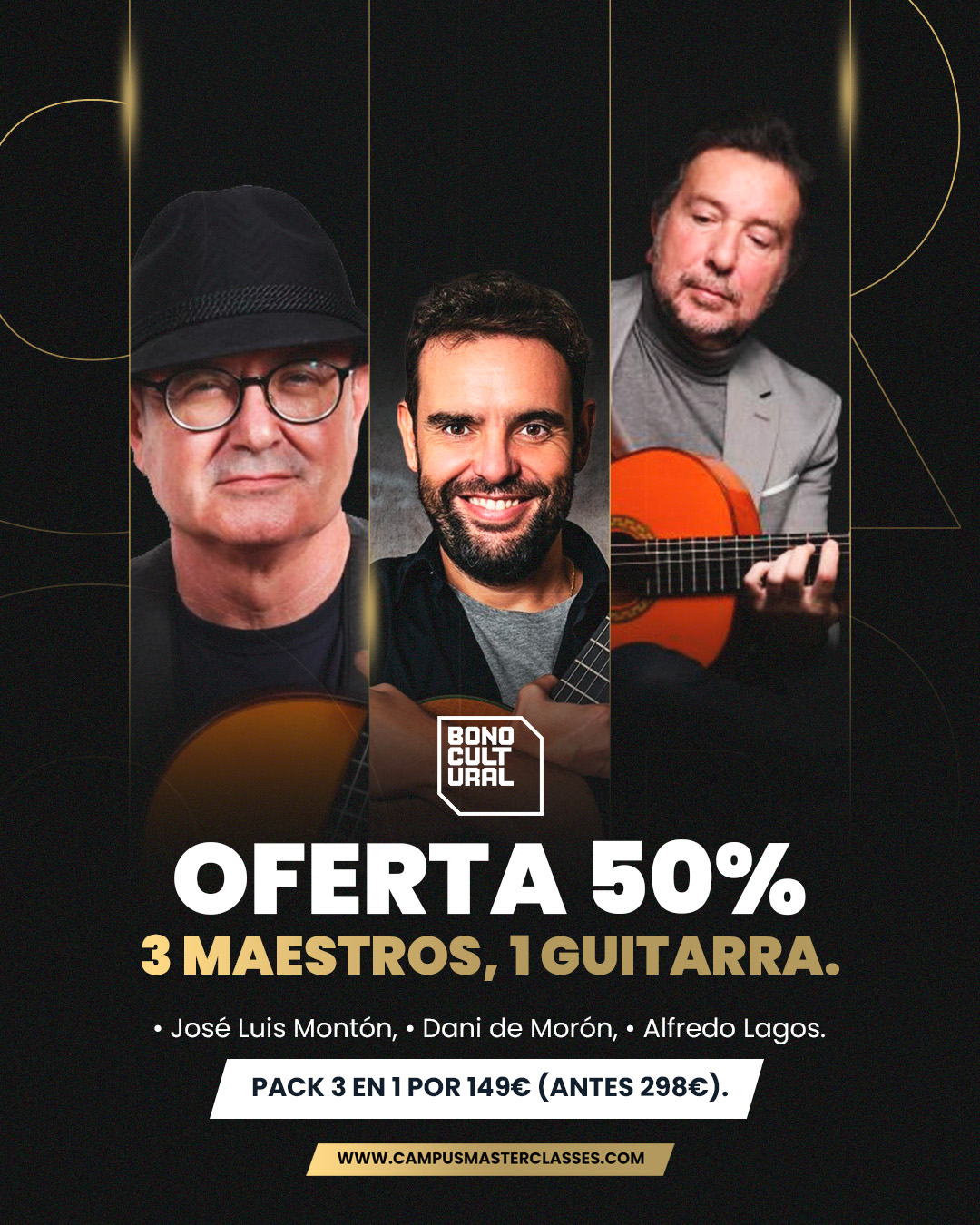 Y, además, con la oferta de lanzamiento de este curso accedes a un descuento de un 10% sobre el 50% en los curso de guitarra flamenca del Maestro José Luis Montón, Dani de Morón y Alfredo Lagos ¡Más de un año de práctica de Guitarra Flamenca de la mano de los mejores y a un precio excepcional!